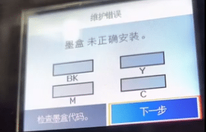 打印机屏幕上面显示墨盒未正确安装检查复核代码,然后进行下一步操作。