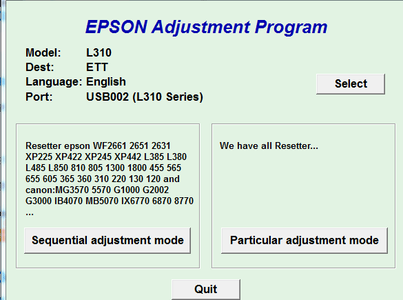爱普生l805打印机清零软件l130 l310l360L3156L1300L4156L3158
