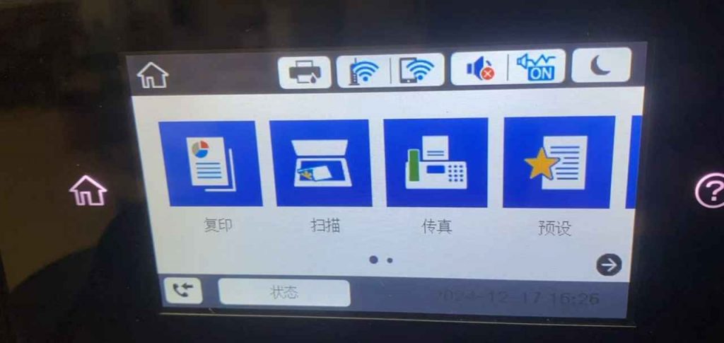 降级完成后,并重新打开打印机。打印机屏幕已恢复正常,说明降级操作成功。